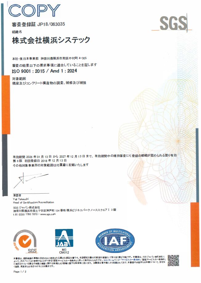 そのような状況の中で、横浜システックは劣化が進行している橋梁・トンネルや建物などの構造物の補修・補強を調査・診断から工事までトータルで行っています。
